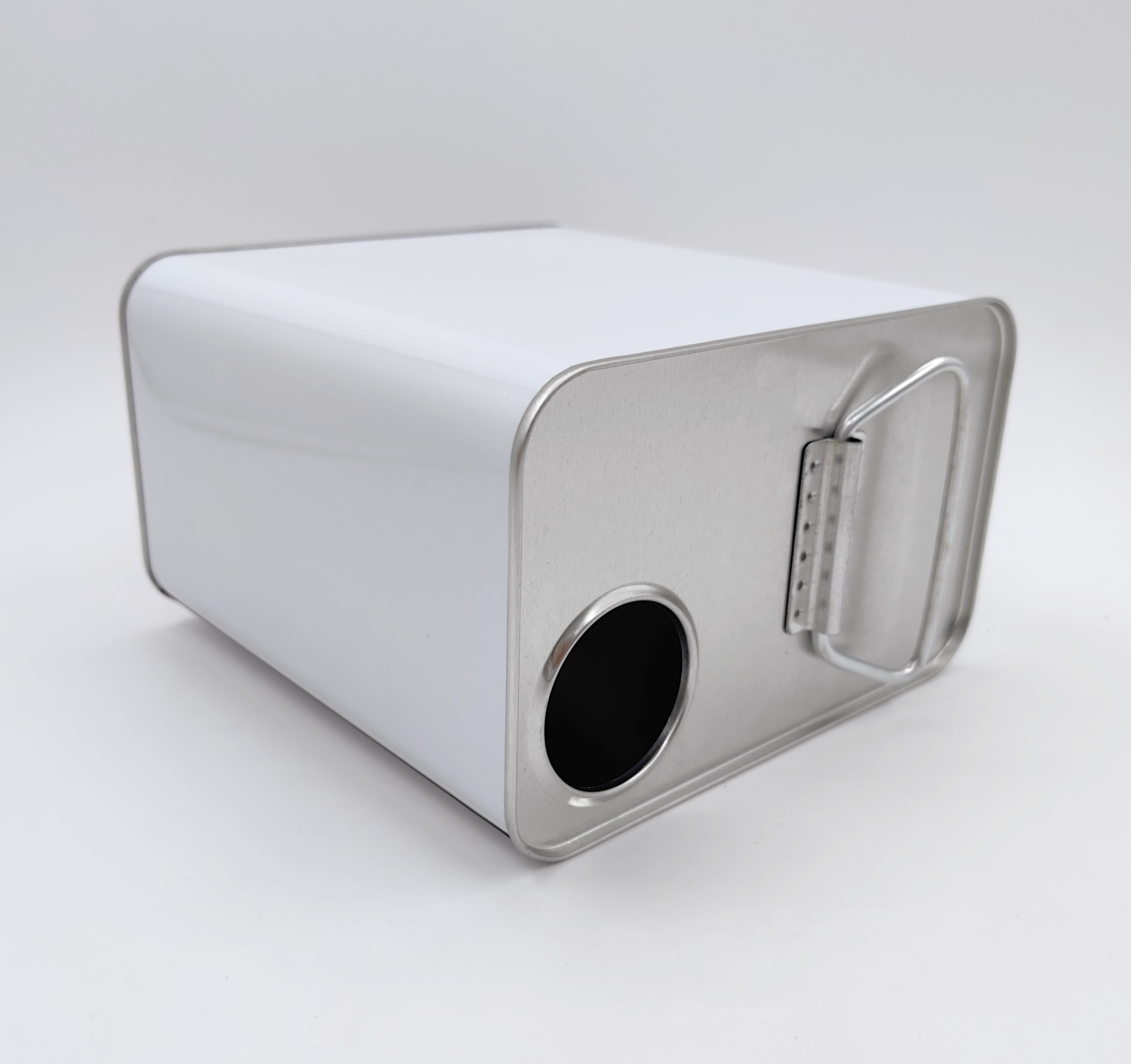 Square metal can body, with different plastic lids, provides better sealing.